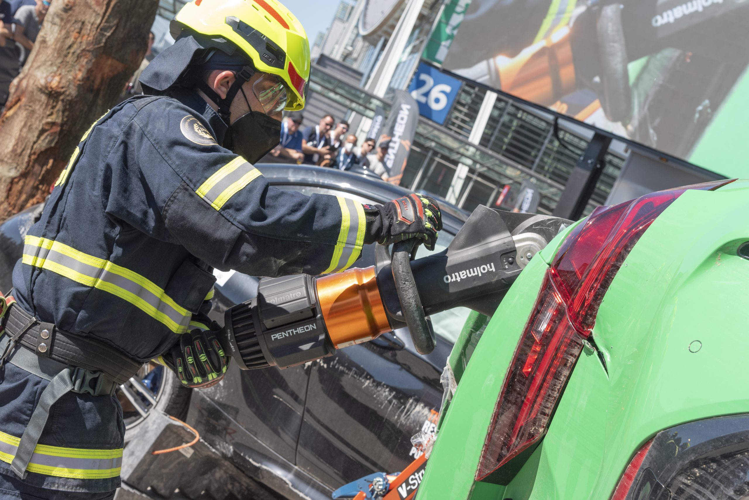 来自13个不同国家的20支队伍在现实的车辆救援场景中展示了他们的技能。他们使用Holmatro工具,如我们的电池供电的Pentheon工具和全新的无绳迷你剪切钳CCU10,竞争将一名“活病人”从宝马车...