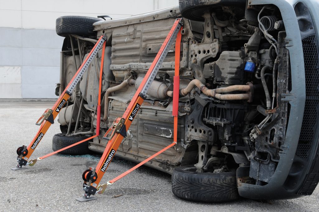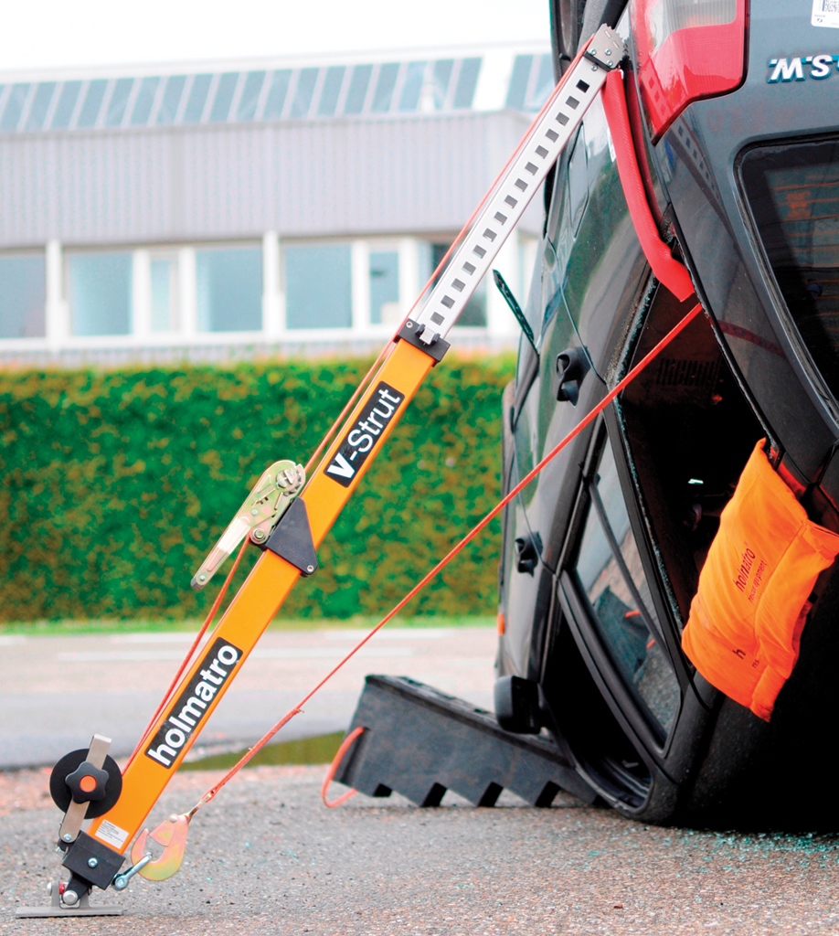 V型支撑 特性轻便的工具,可实现即时、安全的稳定带有集成头、底板和带钩和棘轮机构的张紧带的车辆稳定支柱一体化解决方案,没有可能丢失的松动部件独特的自动锁定系统一次性自动拉出并锁定无需单独操作即可锁定支柱以非常小的间隔在整个支柱长度上锁定孔允许精细长度调整